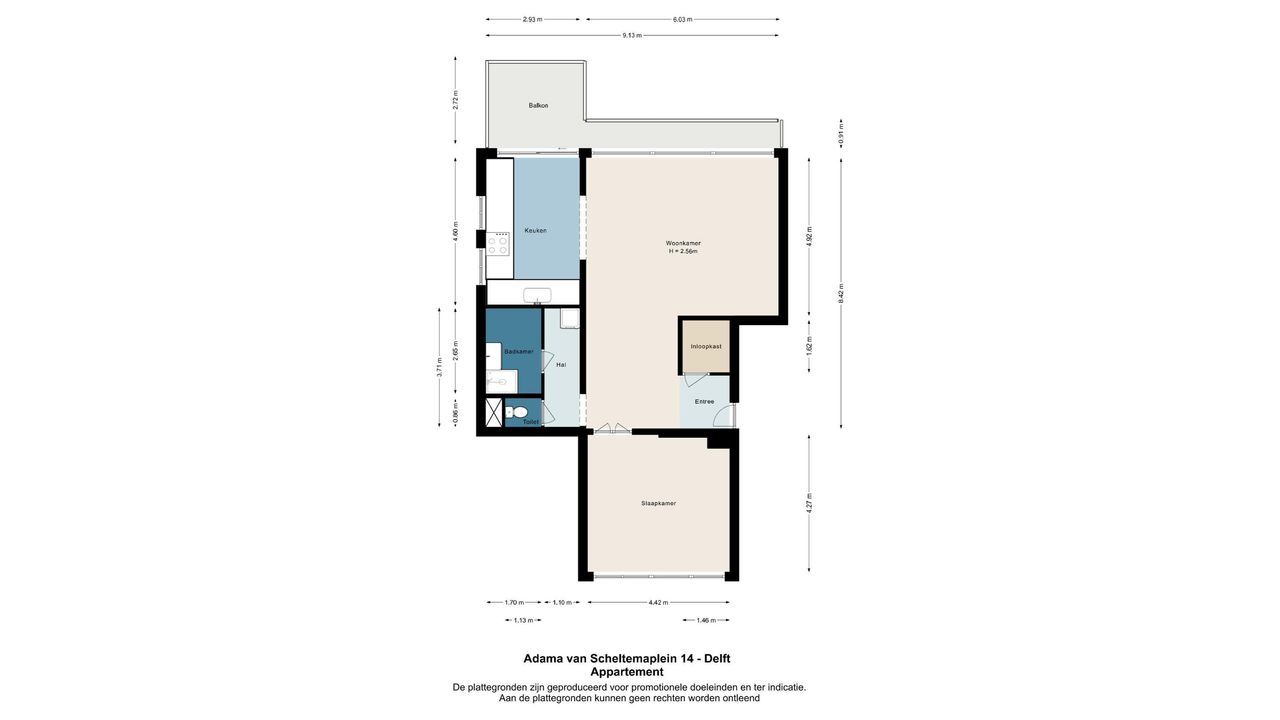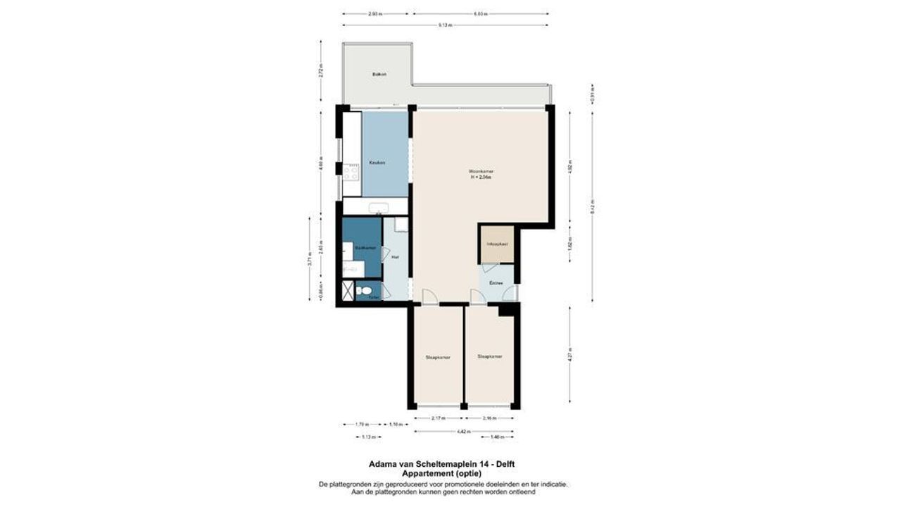 Indeling: afgesloten entree met brievenbussen- en bellentableau. Lift naar de 7e verdieping. De woning deelt op deze woonverdieping het voorportaal slechts met één andere woning.