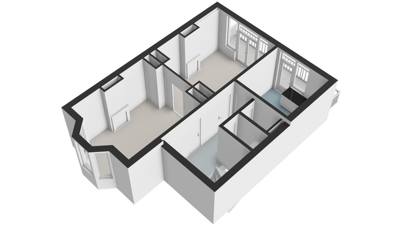 Overloop, kast met bergruimte en opstelplaats van de CV combiketel. Toiletruimte met toilet en fonteintje. Ruime keuken met een U- opstelling die is voorzien van inbouwapparatuur. Kamer en suite met de originele schuifdeuren en vaste kasten aan weerszijden. Aan de achterzijde bevindt zich de eetkamer met openslaande deuren richting het gevelbrede balkon. Dit balkon is overigens ook vanuit de keuken te betreden via de keukendeur.