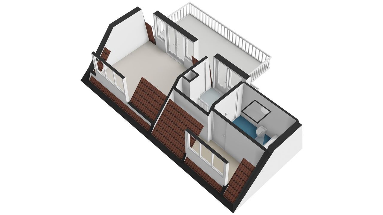 Overloop, royale slaapkamer met toegang tot het riante dakterras van 16 m2. Dit terras is een grote plus — perfect voor een borrel met vrienden, een BBQ of gewoon genieten van het uitzicht over de stad. Tweede badkamer voorzien van lichtkoepel met ligbad, wastafel en derde toilet. Praktische inloopkast met dakkapel.