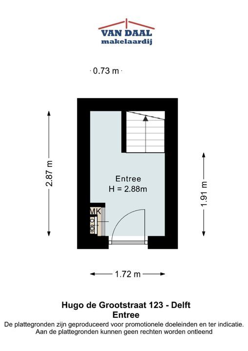 Entree, ruime hal met meterkast en trapopgang plus voldoende ruimte voor het neerzetten van bijvoorbeeld een fiets.