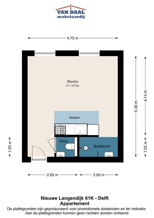 - Instapklare studio, ideaal als eerste koopwoning of voor een student;