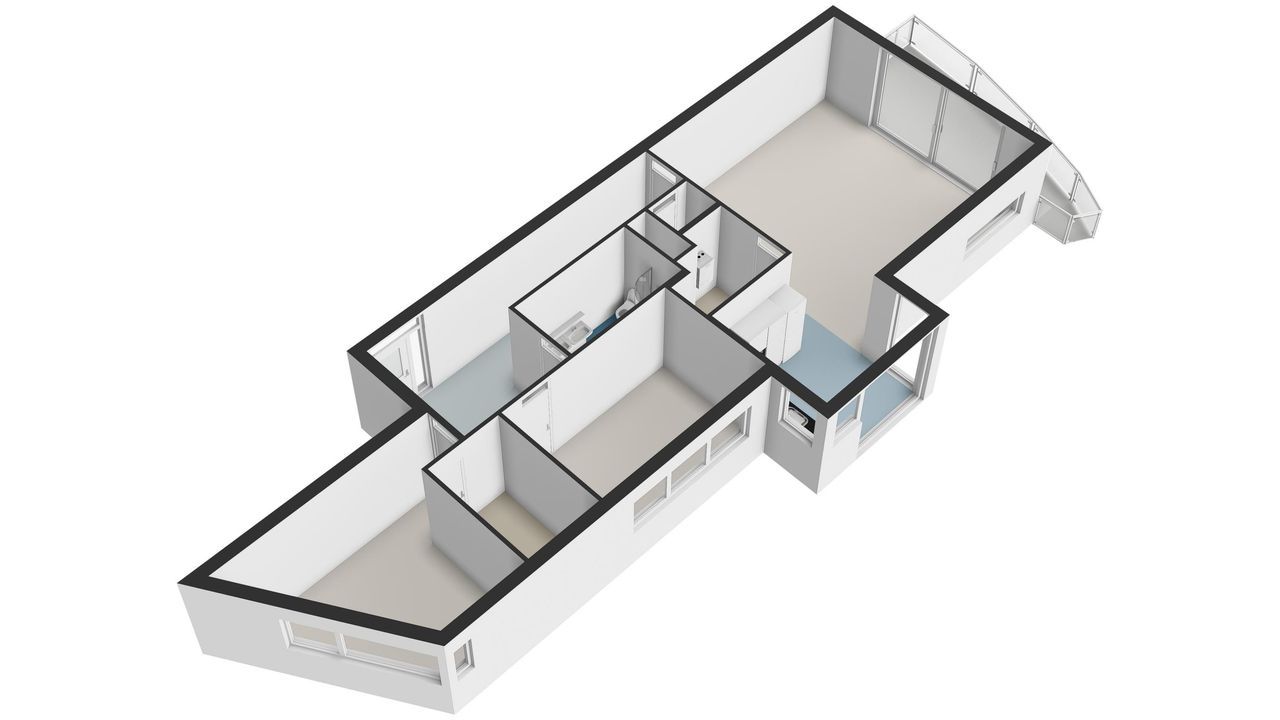 De keuken is open en in verbinding met de woonkamer. Naast de keuken bevindt zich een praktische bijkeuken/berging. Deze ruimte is o.a. voorzien van de mechanische ventilatie unit, opstelplaats van de CV combiketel (2025) en aansluiting van de wasmachine. Aan de voorzijde van het appartement bevinden zich de twee ruime slaapkamers.