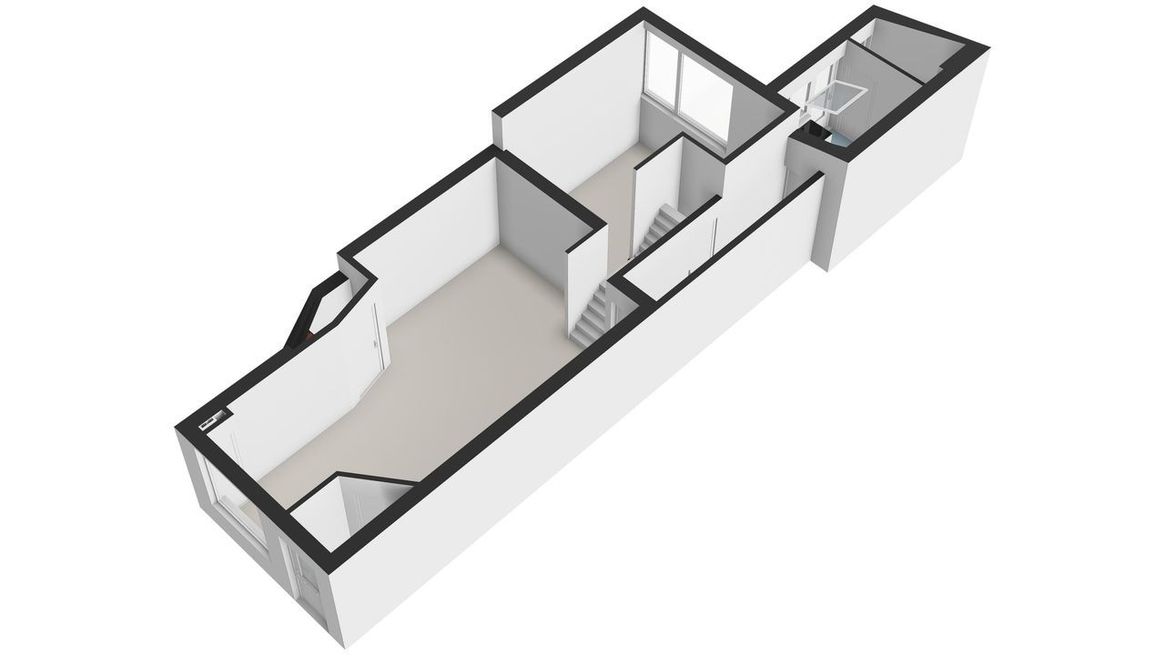 Entree, hal, gang. Woonkamer aan de voorzijde met een trapopgang naar een hoger gelegen slaapkamer met wastafel aan de achterzijde van het object.