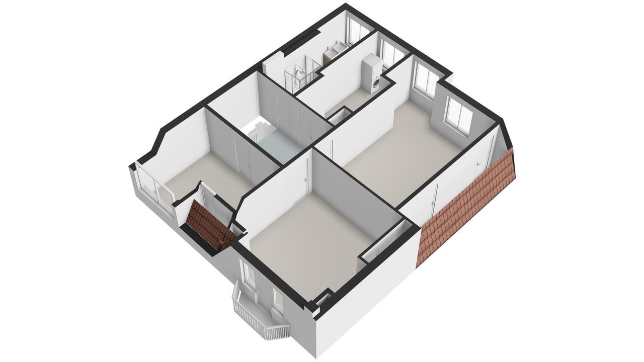 Overloop met toegang tot vier volwaardige kamers, waarvan er twee bijzonder ruim zijn en de derde ook van een prima formaat is. Eén van de slaapkamers beschikt over een charmant balkonnetje. De vierde kamer op deze verdieping is momenteel ingericht als wasruimte.