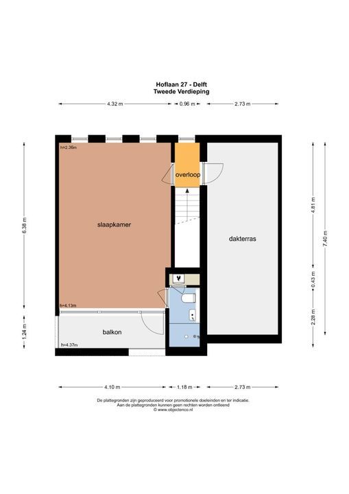 Overloop met toegang tot het dakterras van ca. 20 m2 met sauna. Verrassend ruime slaapkamer met een ca. 4.13 meter hoog plafond en toegang tot het balkon. De 2e badkamer heeft een inloopdouche, wastafel en een wandcloset.