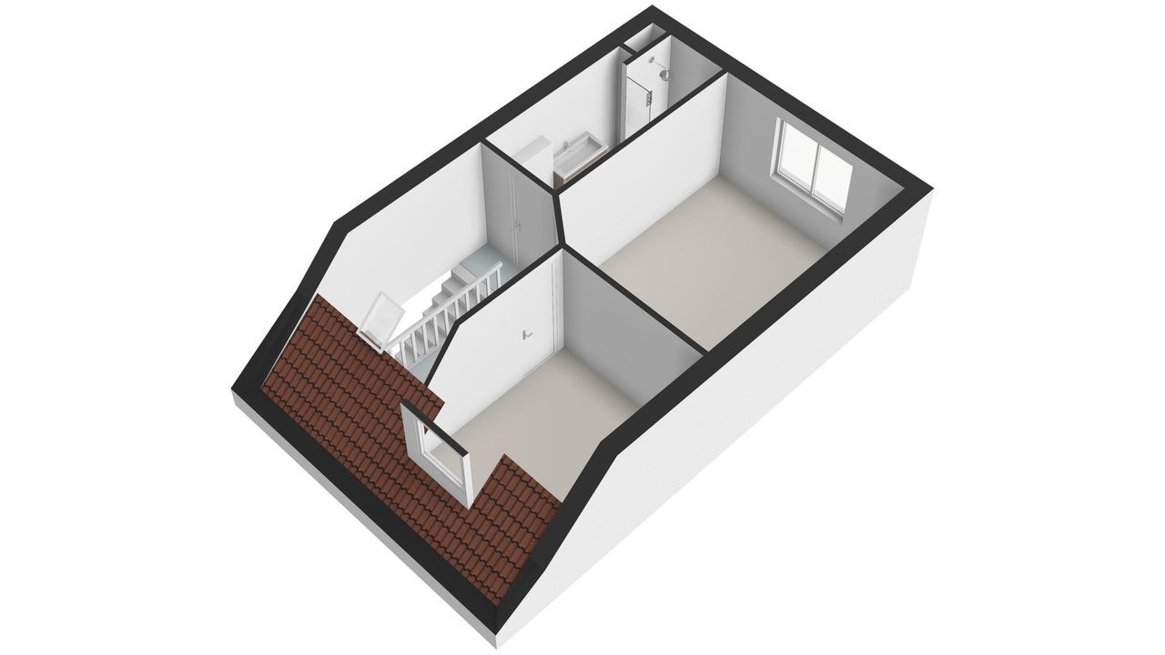 Ruime en lichte overloop. Ruime voorslaapkamer met dakkapel. Achtergelegen moderne badkamer met inloopdouche, vaste wastafel + meubel, designradiator en tweede toilet. Royale achterslaapkamer.