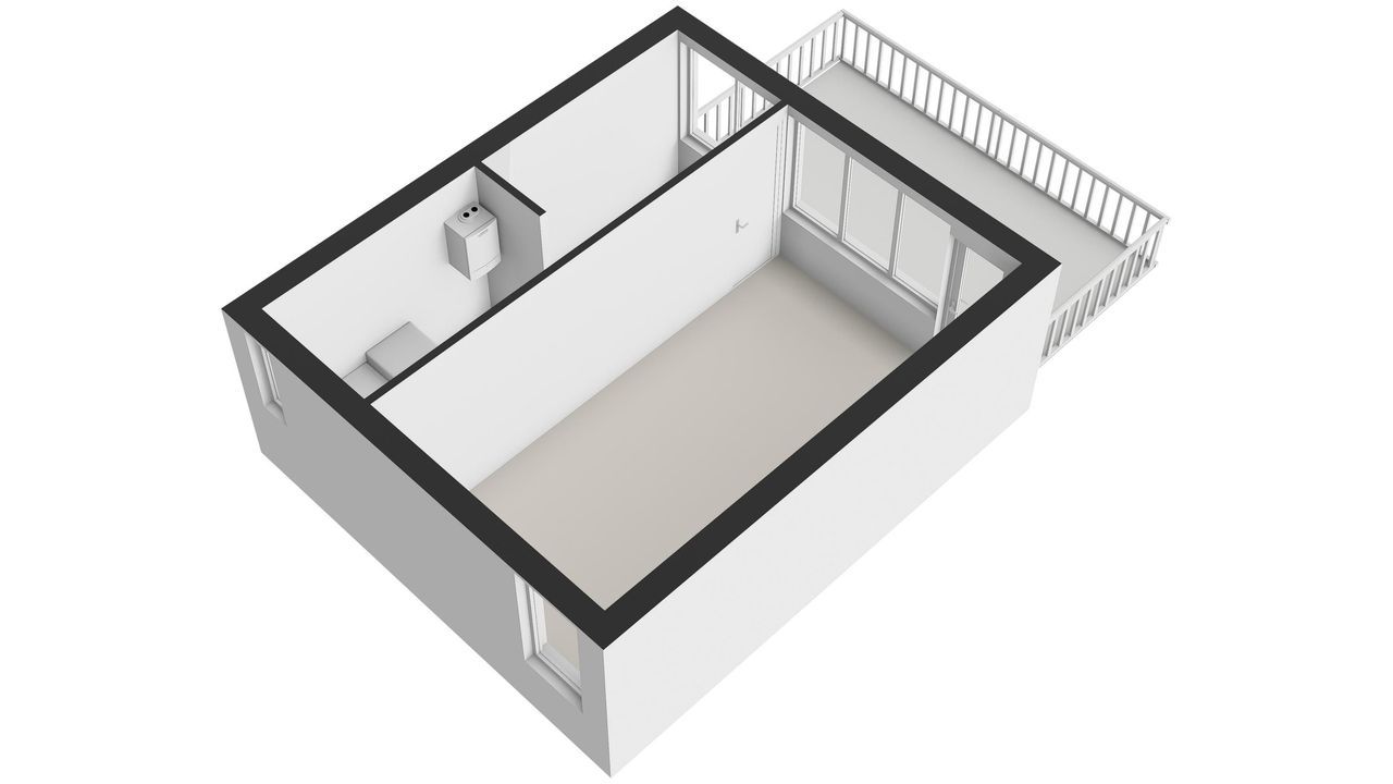 Een ruime slaapkamer met aan twee zijden licht. Toegang tot het platte dak dat als dakterras kan worden ingericht.