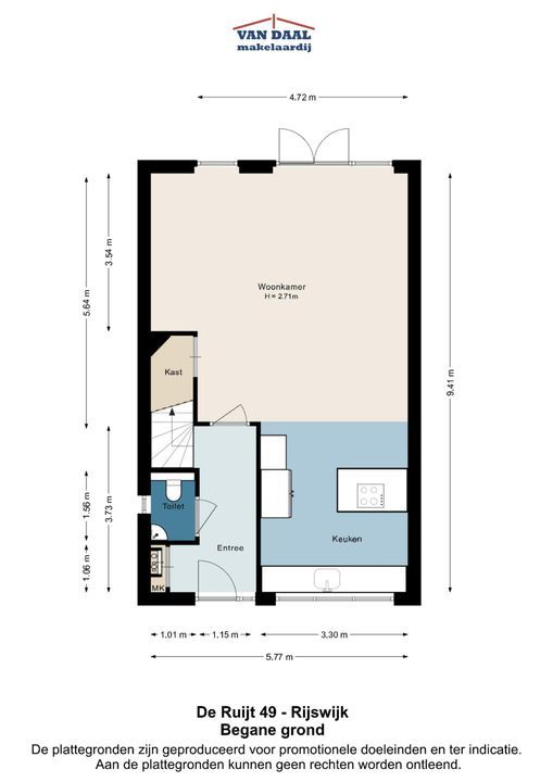 Via de voortuin, voorzien van een zonnescreen, bereik je de entree van de woning. Hal met meterkast, trapopgang en moderne toiletruimte met toilet en fonteintje. De lichte woonkamer beschikt over een praktische trapkast. Aan de voorzijde bevindt zich de moderne open keuken met kookeiland en diverse inbouwapparatuur.