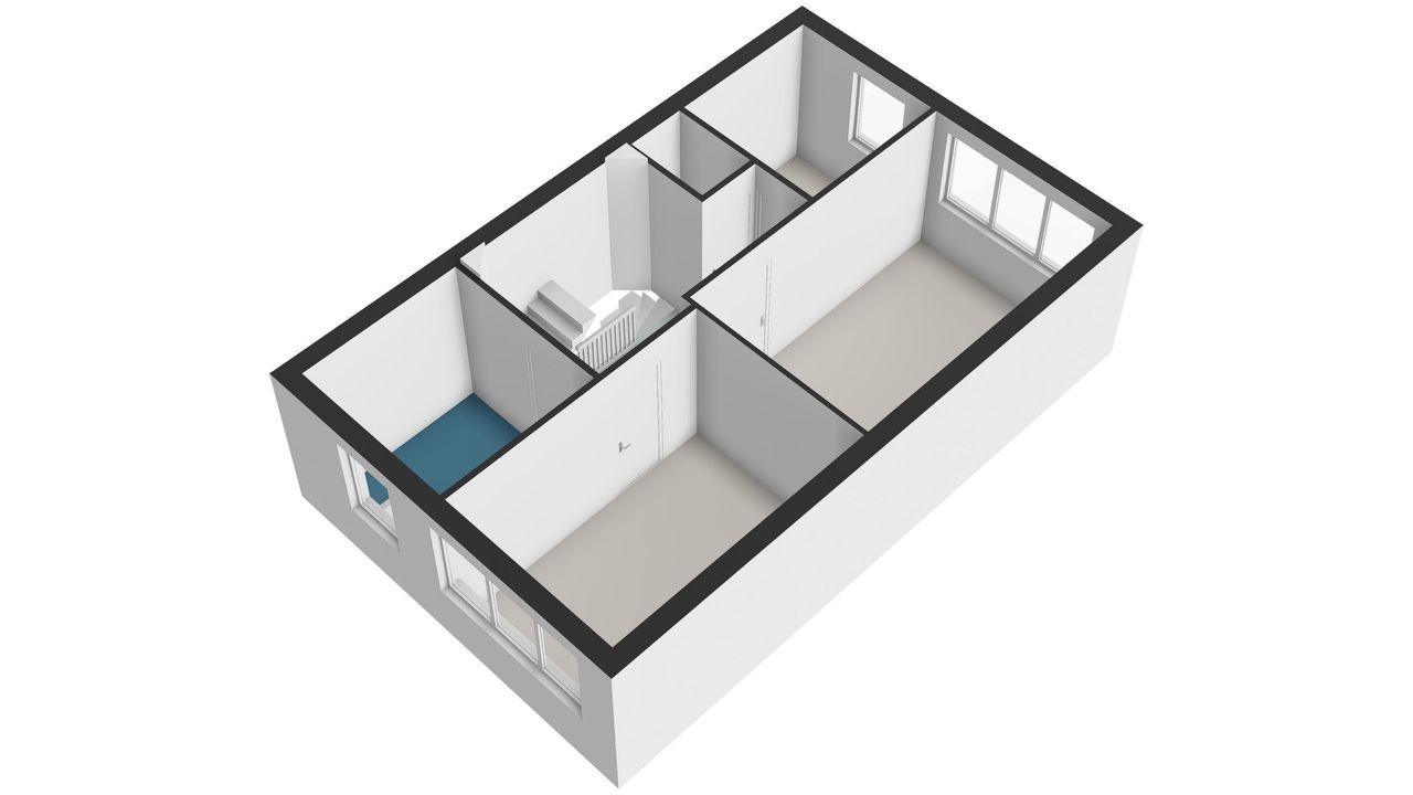 Grote vierde slaapkamer met kastruimte en toegang tot het – momenteel niet in gebruik zijnde – riante dakterras met vrij uitzicht.