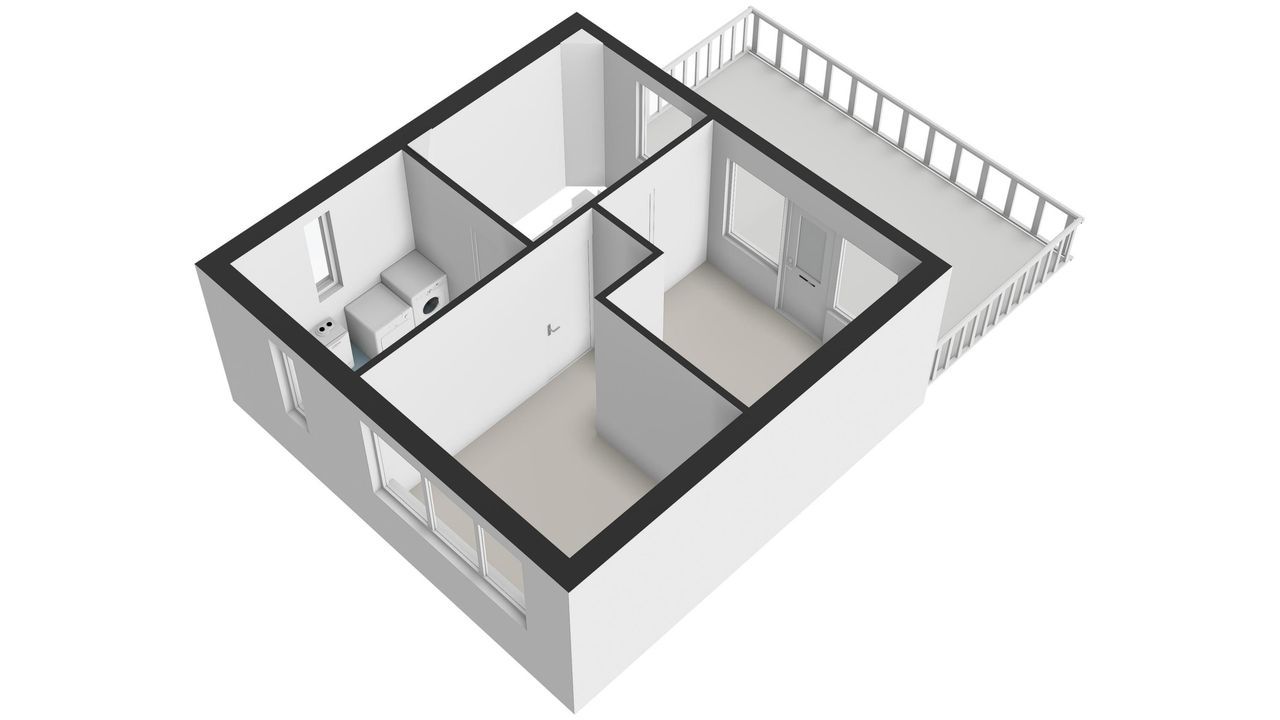Overloop met wasmachineruimte, tevens opstelplaats voor de CV-combiketel en mechanische ventilatie-unit.