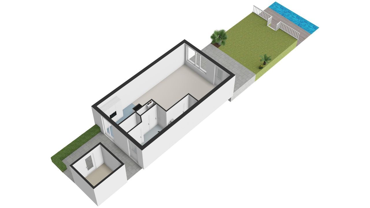 In de voortuin bevindt zich de berging met elektra.