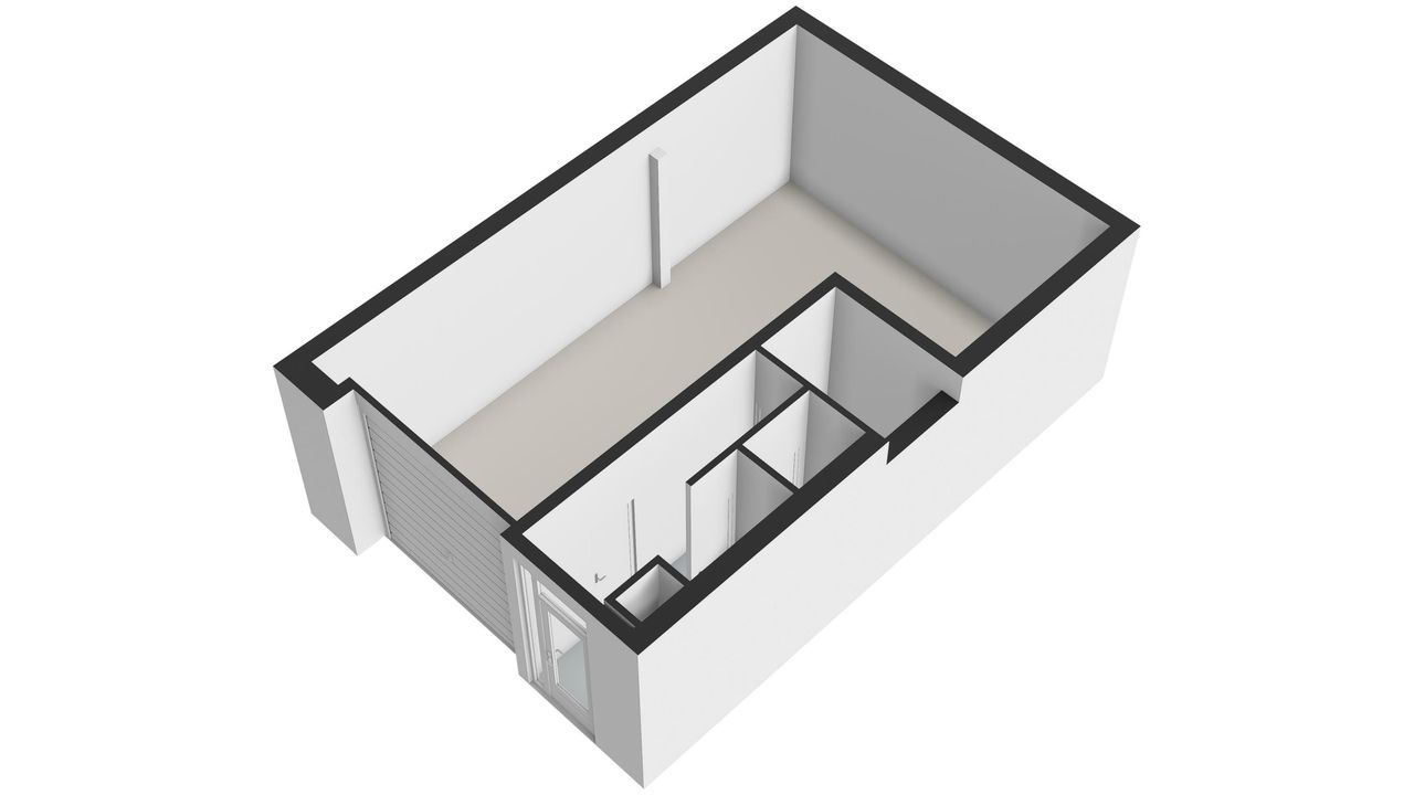 Binnendeur richting de L- vormige bedrijfsruimte die ook toegankelijk is via de overhead deur aan de voorzijde.